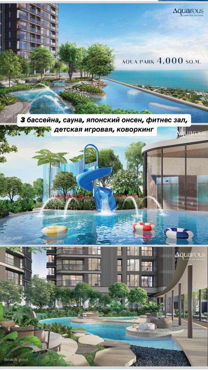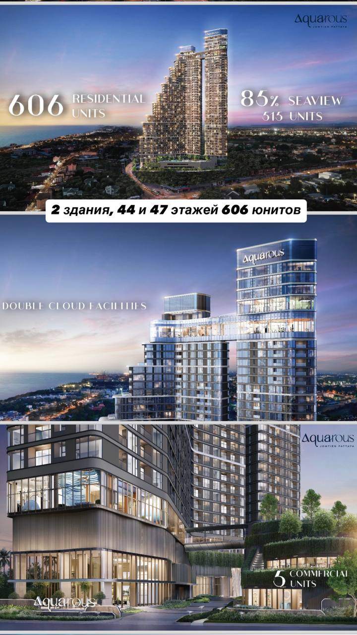 Aquarous Jomtien Pattaya is a high-rise condominium by AssetWise in Jomtien, Pattaya. The project includes 2 towers (44 & 47 storeys), land area 5-3-76.10 rai, 606 residential units and 5 commercial shops. Construction is stated to start in November 2024, with expected completion around November 2027 (Q4 2027).
