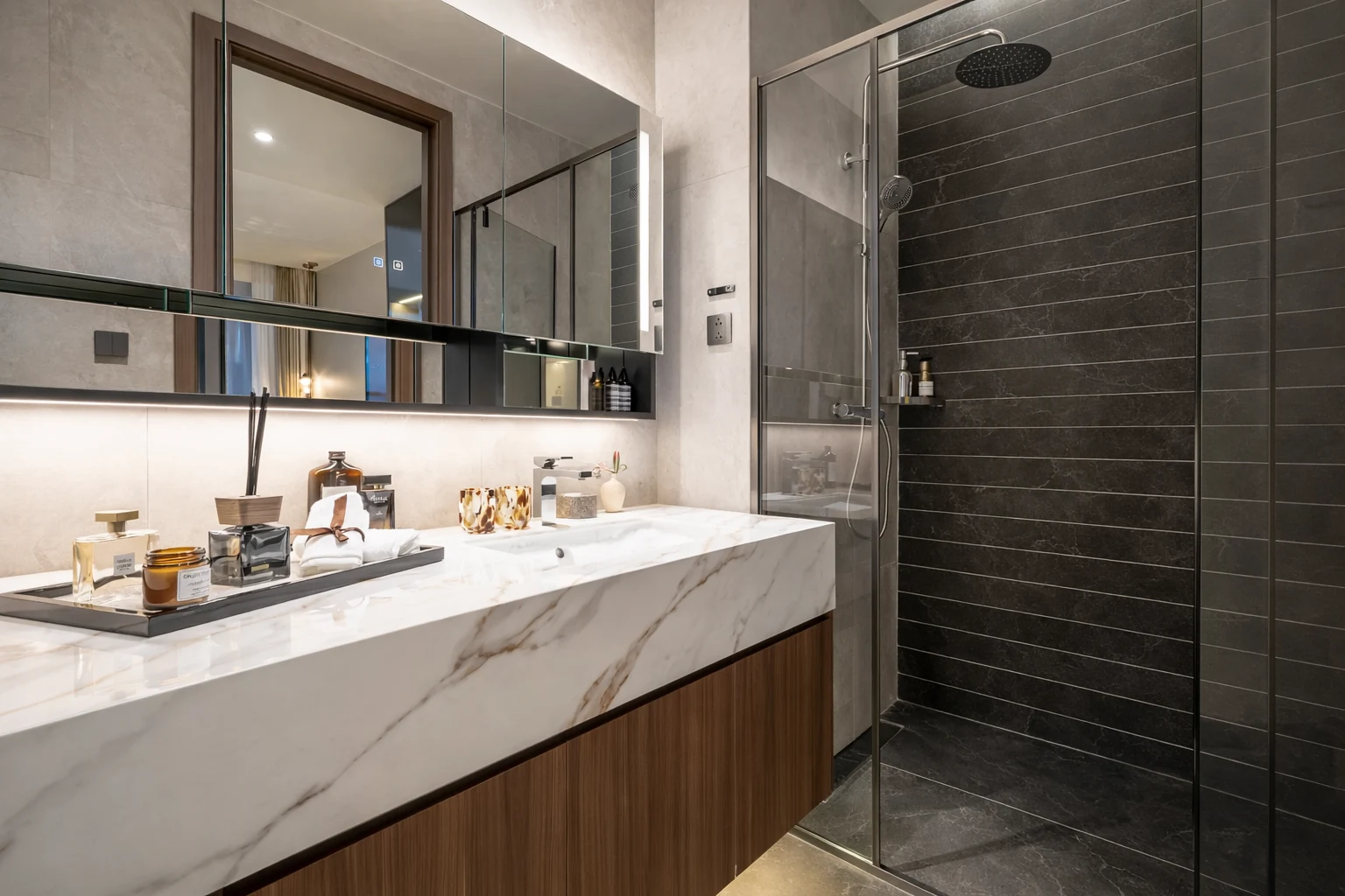 The unit mix typically includes upgraded studios and 1-, 2-, and 3-bedroom apartments. Listings show examples such as a 2-bedroom, 2-bath unit around 75.51 sqm, with overall options starting from roughly 43 sqm and scaling up into larger family layouts.