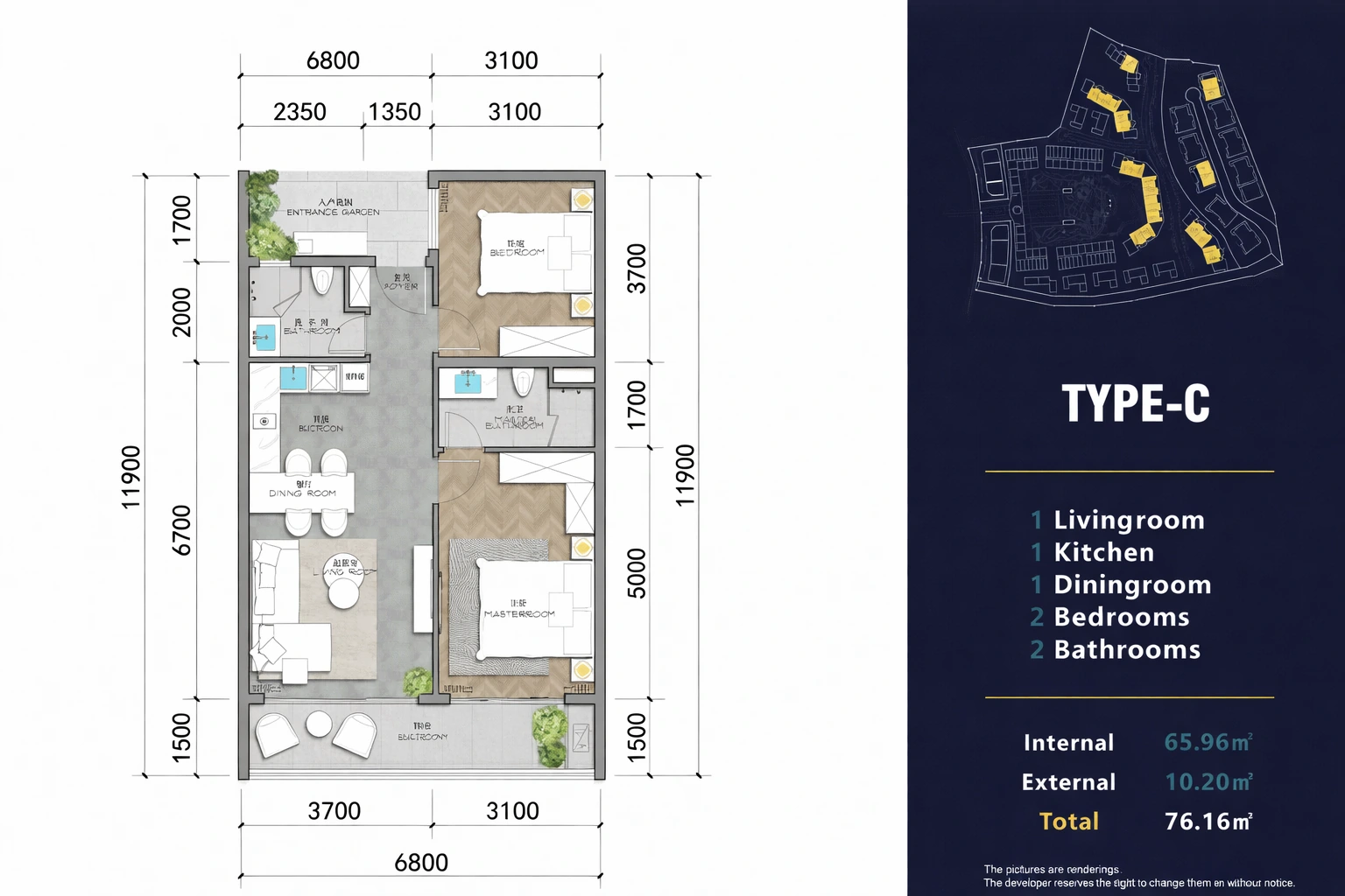 The project is marketed for both lifestyle use and investment. The official website highlights a family-oriented unit mix and mentions an expected return of up to 12% per year. That should be treated as a developer estimate rather than a guaranteed outcome, so it’s best presented carefully in a project card.
