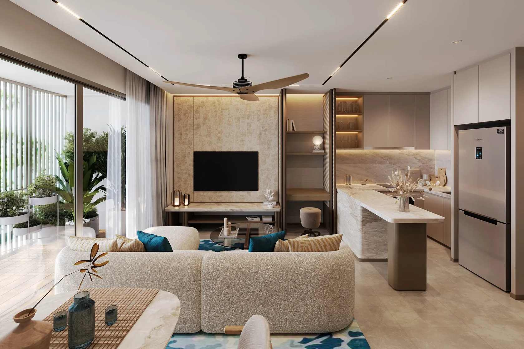The project offers 1-, 2-, and 3-bedroom residences aimed at buyers who want a strong address with practical comfort: easy access to the beach, convenient transport routes, and a district that stays in demand for rentals.