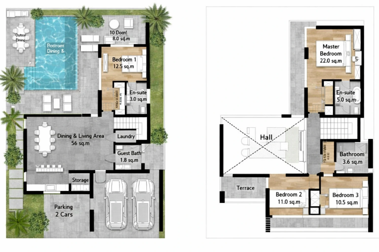 | 3 Bedroom Villa | 326–400 | 37 400 000 ฿ | 59 200 000 ฿ |