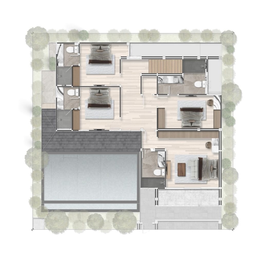 Zensiri Estate Jomtien is a boutique luxury villa project in Central Jomtien, located in one of Pattaya’s most established residential areas. The development includes 26 private pool villas with modern kitchens, generous indoor space, and covered outdoor living areas. Homes also feature built-in wardrobes, parking, and thoughtfully planned engineering systems. The official project page highlights landscaped common areas, access control, CCTV, 24-hour security, and underground infrastructure, including electrical systems and fibre-optic internet.